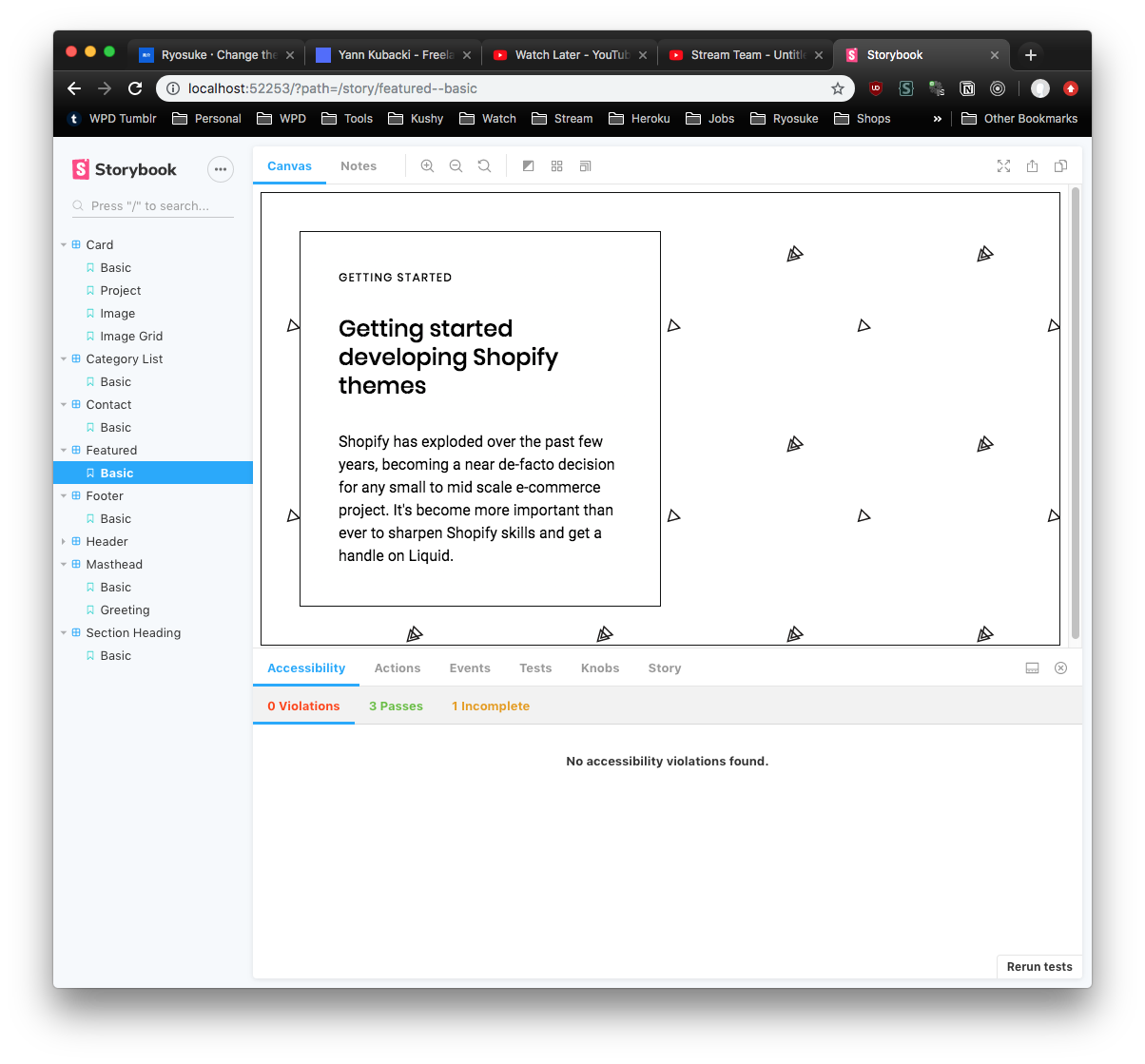 Since I wanted to design components first, I wanted to leverage **Storybook** and it's ecosystem. It's an amazing tool for design systems or component libraries, offering a lot of fantastic utilities outside of the simple hot-reloading setup. Namely, the accessibility tools are indispensable, allowing you to ensure each component passes accessibility standards (from WCAG to color blindness).